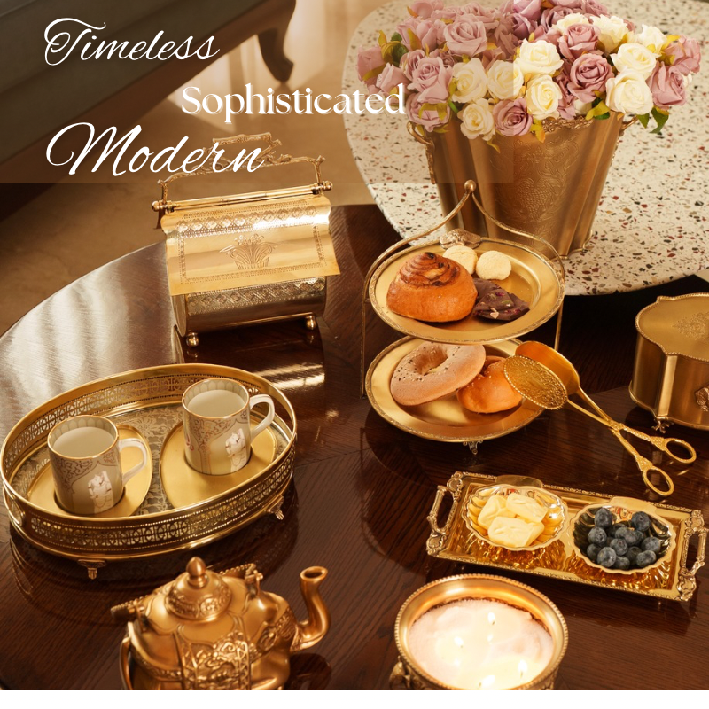 From porcelain touched with pure gold to brassware etched with timeless detail, each creation transforms the everyday into something memorable—tea becomes ceremony, a meal becomes a memory, a home becomes a story.