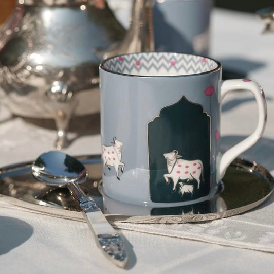 Pichwai - Set of 2 Fine Porcelain Tea Cups with Pure Platinum