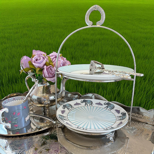 Gulzaar - 2 tier platter in Porcelain and Brass