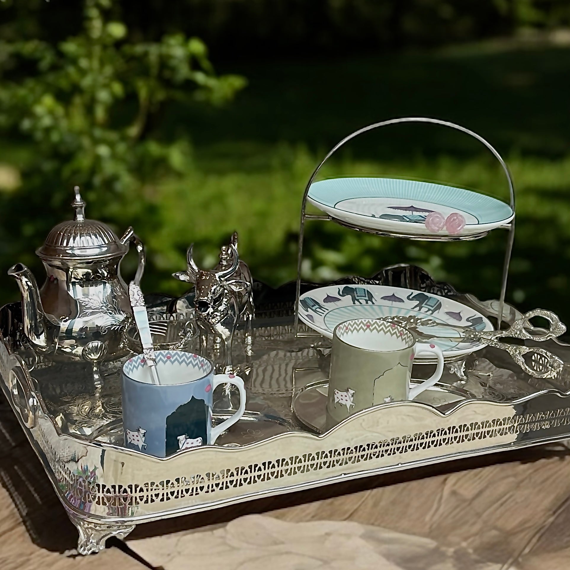 Inspired by the grandeur of ancient India, the Názm Collection of brass trays...