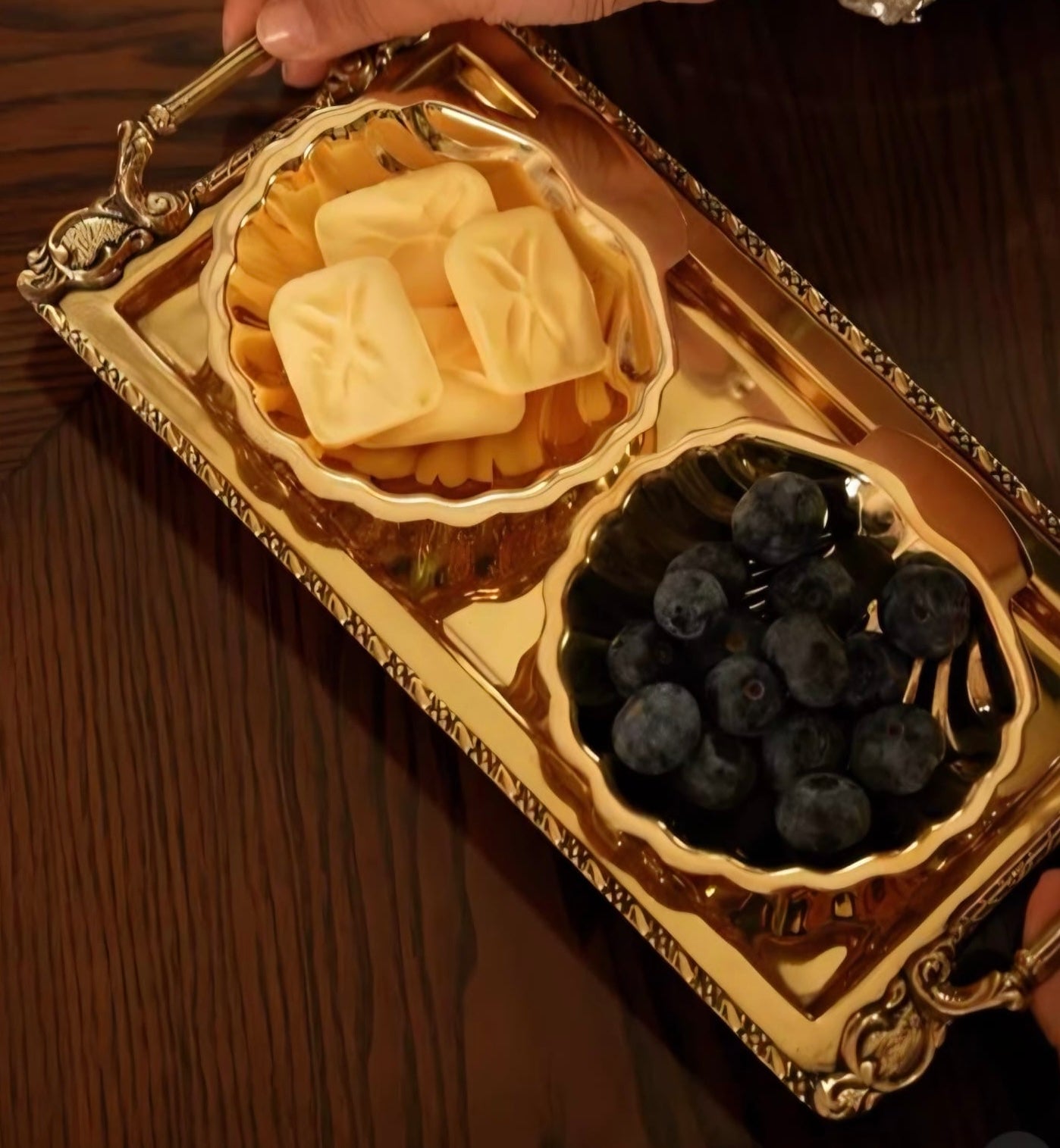 Handcrafted in brass and finished in warm gold and cool nickel, these shell-shaped bowls bring a touch of the sea to your table. Their fluid form and reflective surface make them perfect for serving dry fruits, sweets, or simply as decorative accents.