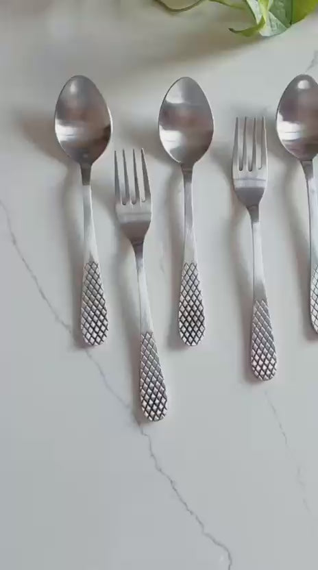 We recommend hand washing your cutlery immediately after use with warm, soapy water. Avoid leaving them in a sink filled with water for extended periods. When cleaning your cutlery, use a soft sponge or cloth to avoid scratching the surface or damaging the handles. After washing, ensure your cutlery is dried completely with a clean, dry towel to prevent water spots or discoloration.