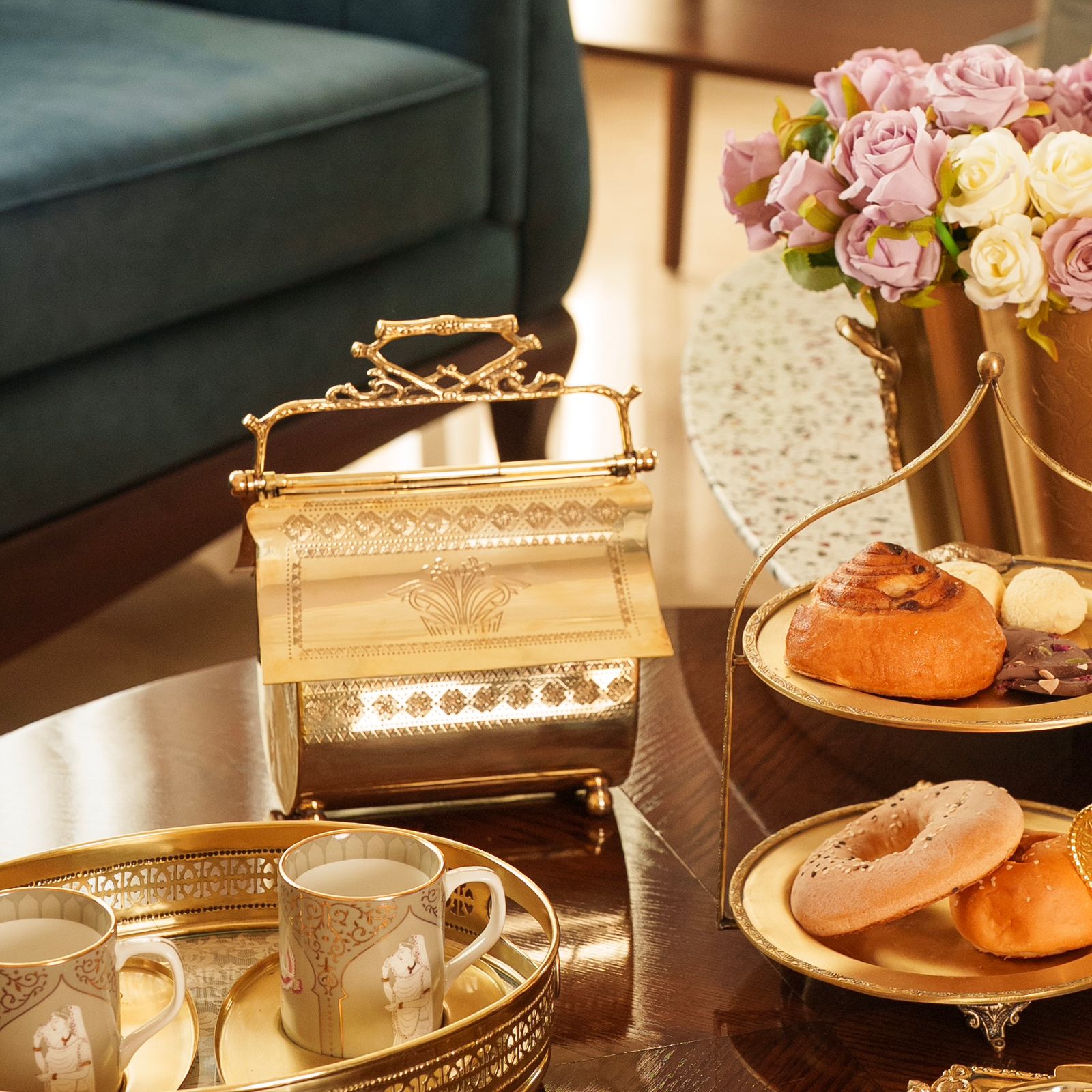 Inspired by the grandeur of ancient India, the Názm Collection of brass trays...