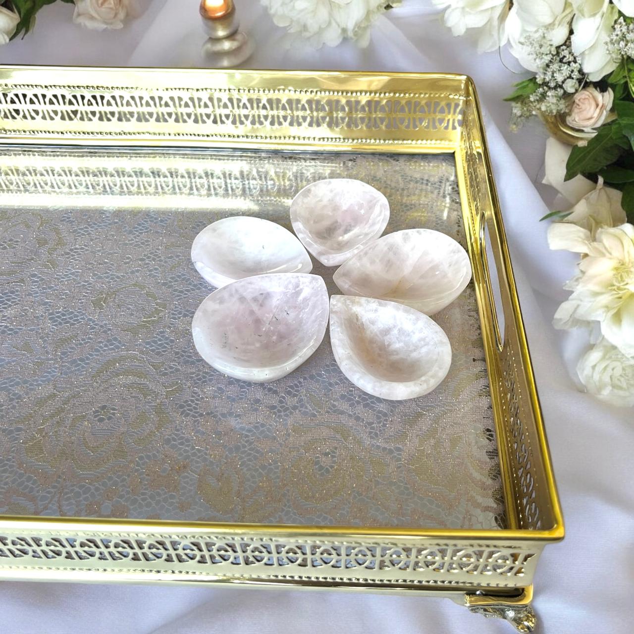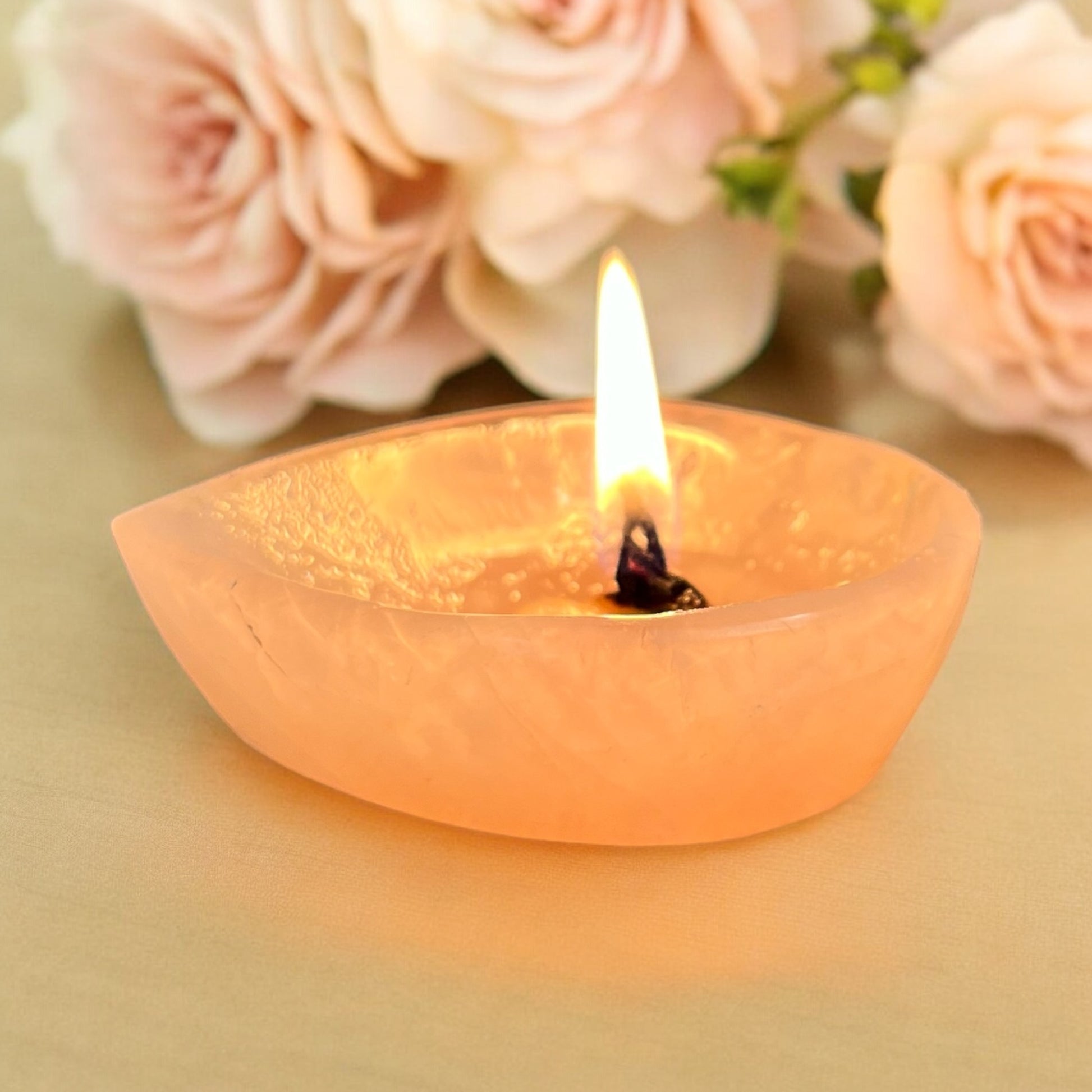 Introducing our exquisite diya handcrafted from stunning rose quartz, a semi-precious gemstone known for its soothing and gentle energy. It features the soft, pink hues of rose quartz, adding a touch of elegance and tranquility to any room. Its warm, diffused light creates a calming atmosphere, perfect for relaxation and meditation. The natural variations of rose quartz ensures that each diya is a unique piece of art, combining both beauty and functionality. Illuminate your space with the gentle glow and positive energy of rose quartz.