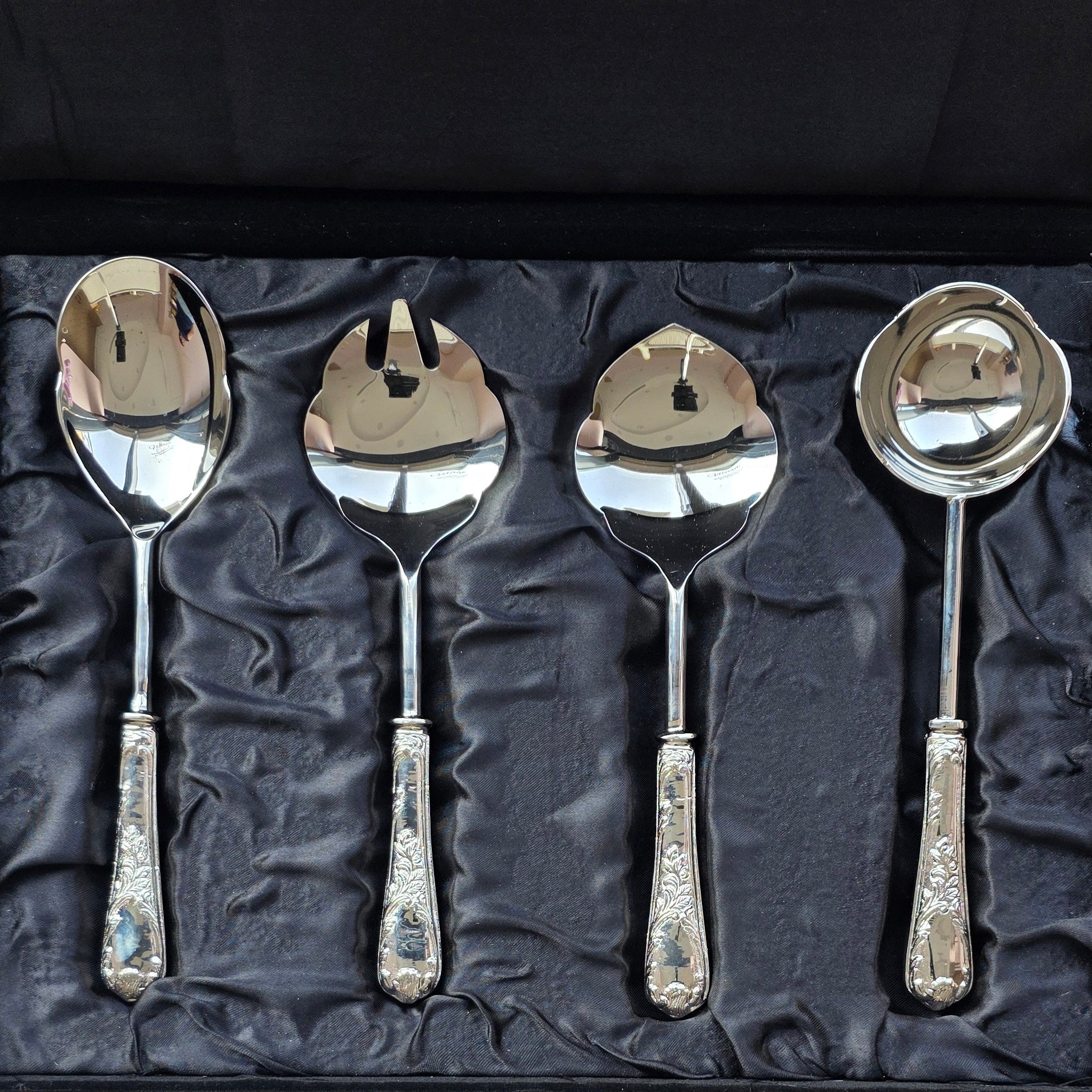 Vilora is a four-piece serving set that celebrates elegance in its most refined form. Each piece features a delicately sculpted floral scoop, uniting beauty with functionality, while the Victorian-inspired etching on the brass handles lends an heirloom allure.